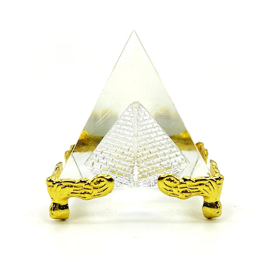 Vastu Feng Shui Crystal Glass Pyramid with Stand for Positive Vibrations, Prosperity & Good Luck