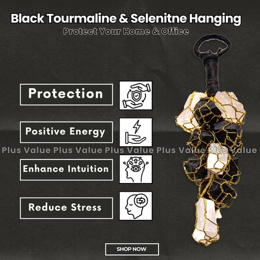 Black Tourmaline / Selenite Stone Crystal Door Hanging for Protection from Negative Energy at Home & Office