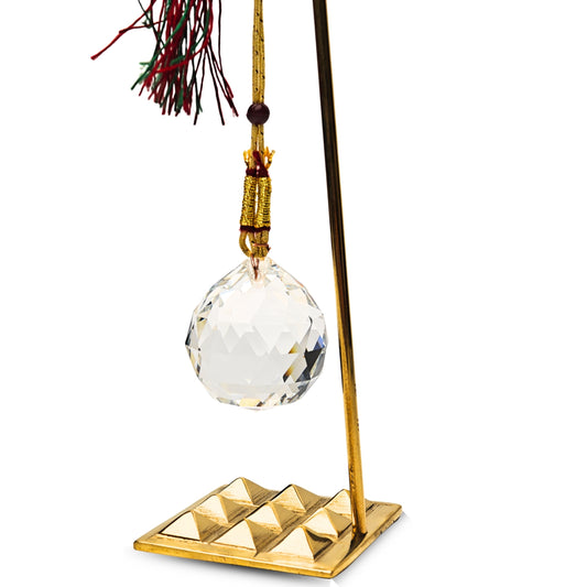 Feng Shui Crystal Ball With Brass Pyramid Stand for Students Education, Memory
