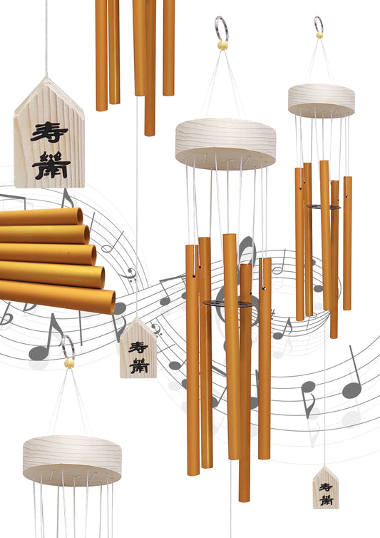 Feng Shui Metal Wind Chime Six 6 Rods Pipes Windchime for Home Office Positive Energy for Balcony Bedroom Excellent Sound [28.5inch / 73cm, Golden Colour]