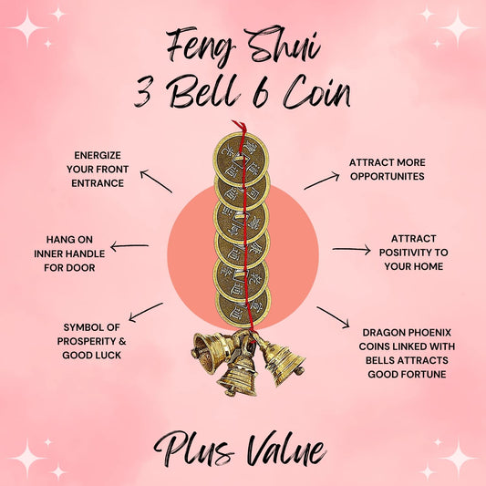 Feng Shui Vastu Lucky 3 Bell & 3 Coins or 3 Bell & 6 Coins for Wealth & Prosperity