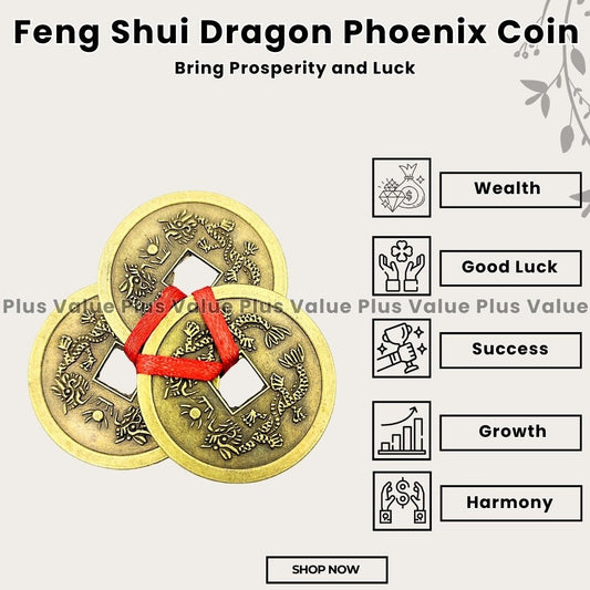 Feng Shui Vastu Remedies Dragon Phoenix 3 Good Luck Coins Set Brass - Wealth, Prosperity, Money, Good Luck (Big Size)