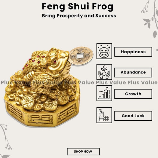 Fengshui Lucky Three Legged Feng Shui Money Frog Toad Good Luck, Wealth, Prosperity, Success, Happiness (Golden Colour)