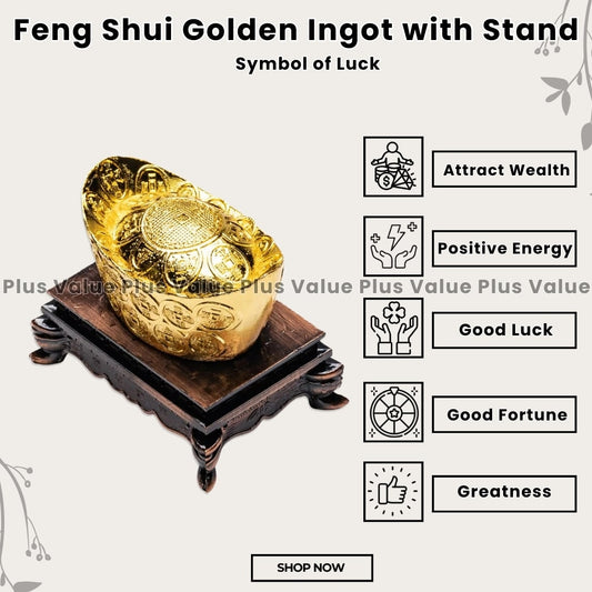 Feng Shui Golden Ingot with Stand Wealth Symbol
