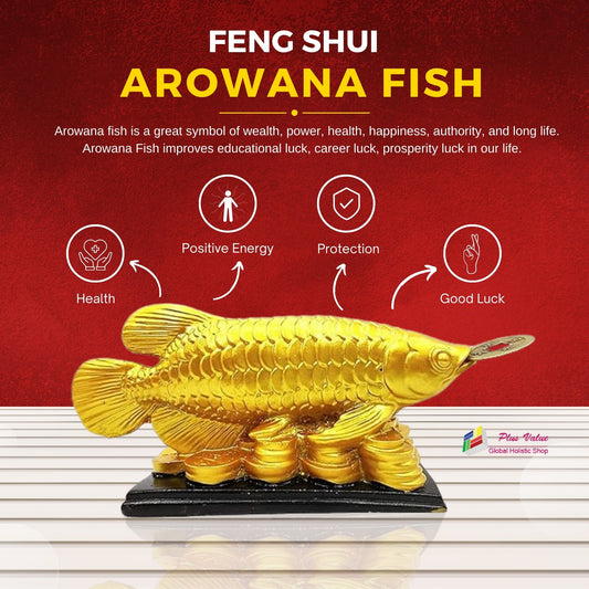 Lucky Feng Shui Golden Arowana Fish Statue for Protection & GoodLuck at Home and Office [Best Seller]