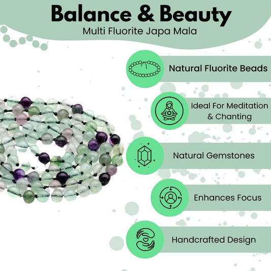 Multi Fluorite Necklace Japa Mala 108 + 1 Bead (Knotted)