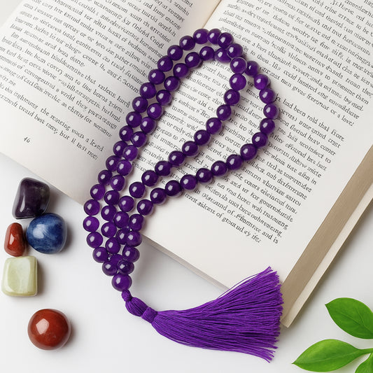 Purple Amethyst Necklace Japa Mala 108 + 1 Bead (Knotted)