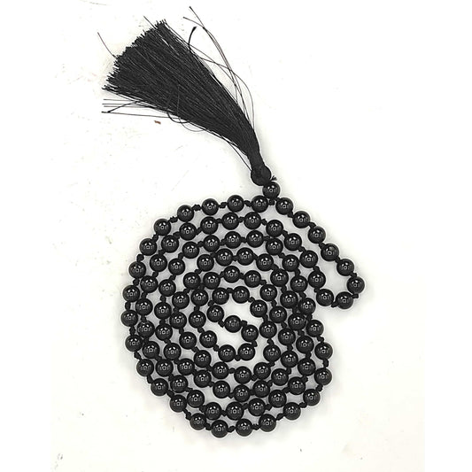 Natural Black Tourmaline Necklace Japa Mala 108 + 1 Bead (Knotted)