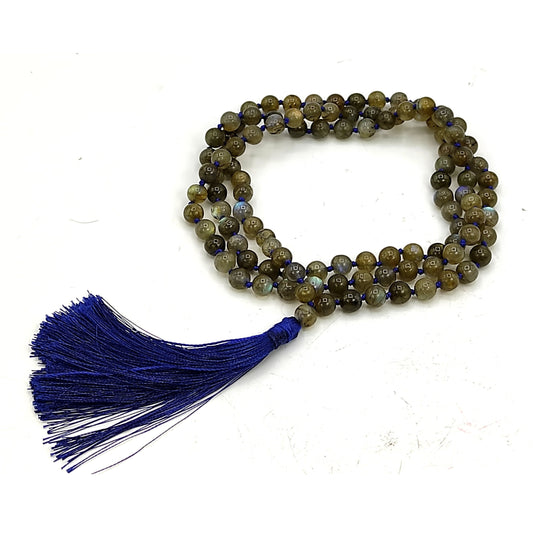 Natural Labradorite Necklace Japa Mala 108 + 1 Bead (Knotted)