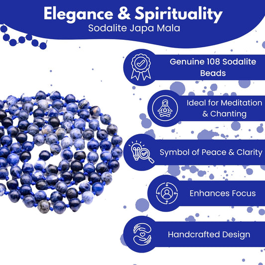 Sodalite Necklace Japa Mala 108 + 1 Bead (Knotted)