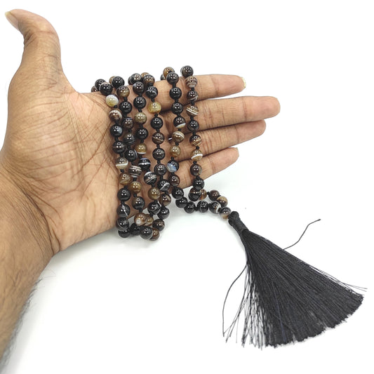 Black Sulemani Hakik Stone Crystal Necklace Japa Mala 108 + 1 Bead (Knotted)