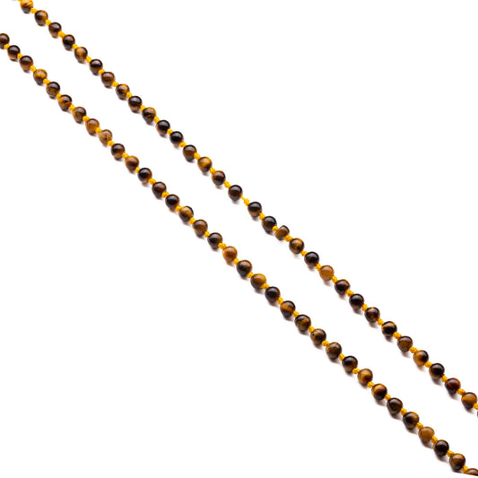 Tiger Eye Necklace Japa Mala 108 + 1 Round Beads (Knotted) for Courage Strength Confidence