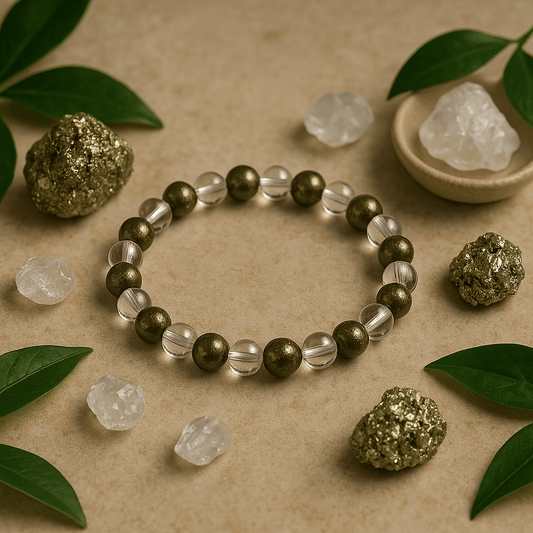 Combined Pyrite and Crystal Quartz Bracelet Multiple Benefits - A Money Magnets, Positivity, Prosperity