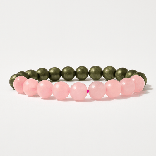 Combined Rose Quartz and Pyrite Bracelet for - Money Magnet, Attract Love, Relationship, Prosperity