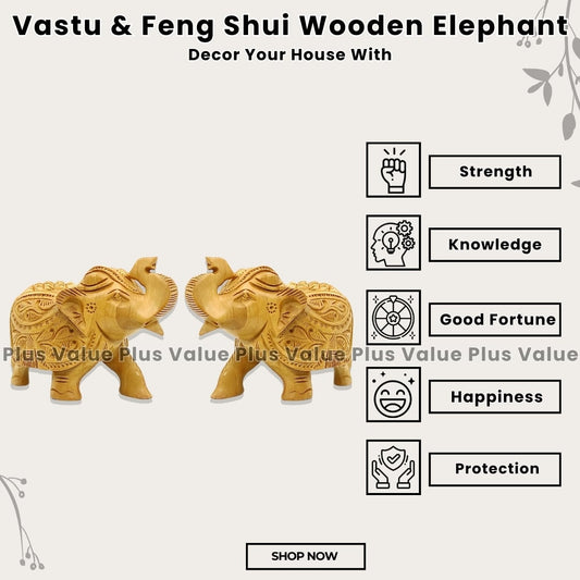 Wooden Elephant Carved Statue for Vastu, Feng Shui, Home Decor