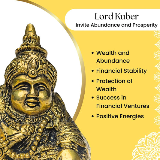 Lord Kuber Brass Statue – Hindu God of Wealth and Prosperity – Ideal for Home, Office, Tijori, and Locker (Size 5 x 3 inches)