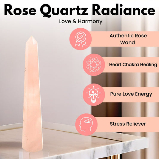 Pink Rose Quartz Jumbo Healing Wand - Reiki Crystal Healing Aura Chakra Vastu Feng Shui