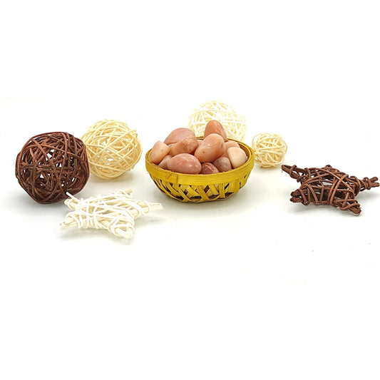 Tumbled stones are smooth, small, polished gemstones/crystals crafted from raw stones. They undergo treatment to achieve a smooth, glossy surface. These are hand-polished to showcase their natural beauty, perfect for reiki, crystal healing, Meditation, Vastu, Feng Shui, Spiritual Practices and Home Decoration.
