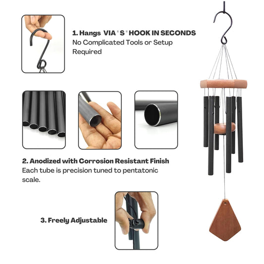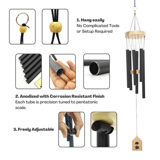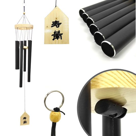 Feng Shui Metal Wind Chimes for Home Bungalow Villa Garden Decor 6 Pipes [28 Inches, Black Color, Big Size] (Model W-154