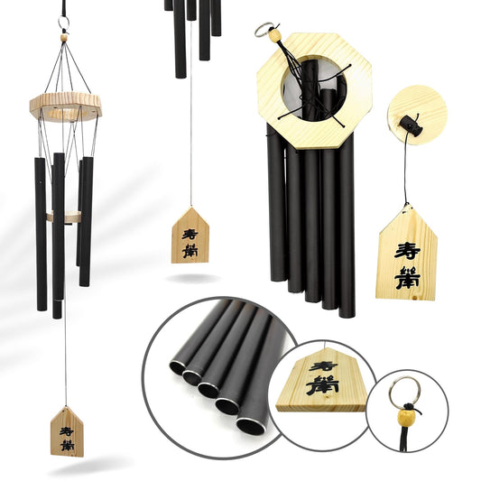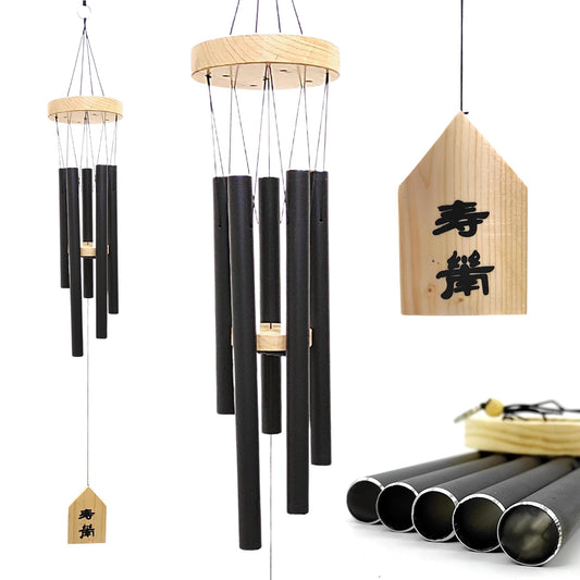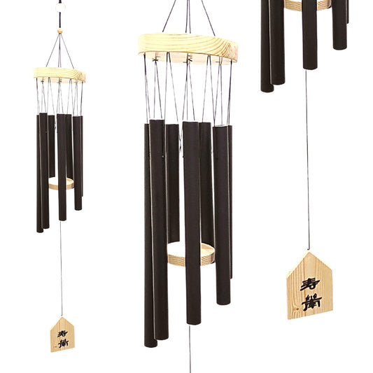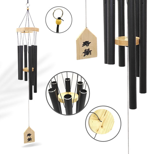 Feng Shui Metal Wind Chimes for Home Bungalow Villa Garden Decor 6 Pipes [36 Inches, Black Color, Big Size] (Model W-152