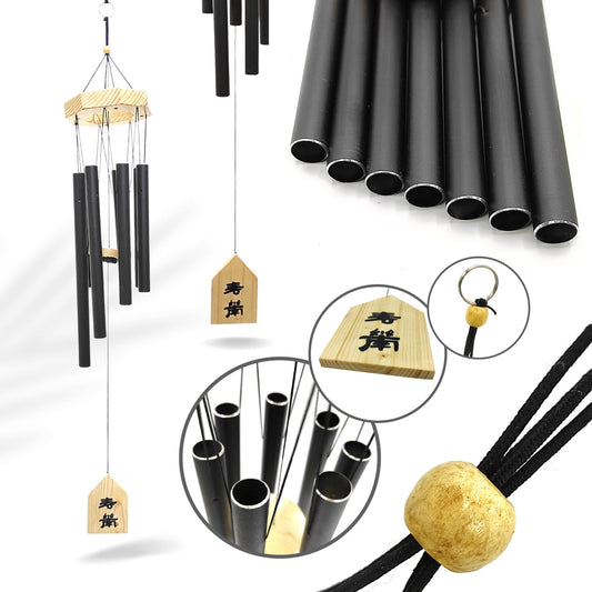 Feng Shui Metal Wind Chime Seven 7 Rods Pipes Windchime for Home Office Positive Energy for Balcony Bedroom Excellent Sound [29.5inch / 75cm, Black Colour]