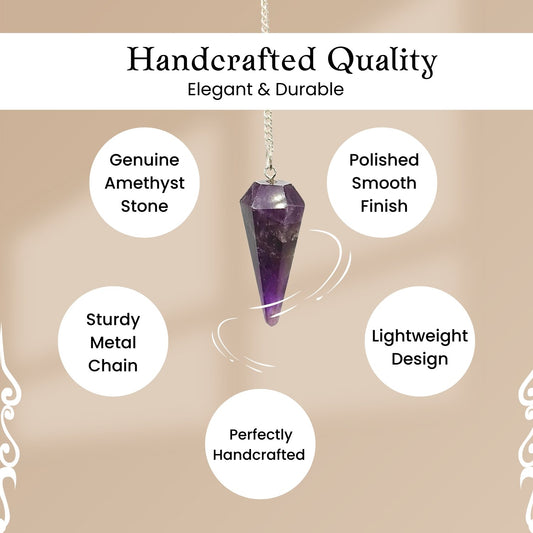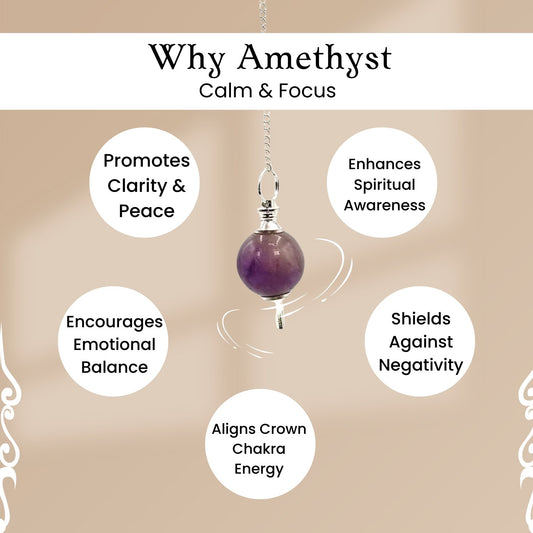 Amethyst Crystal Ball Chain Dowsing Pendulum for Reiki, Chakra, Healing, Meditation (4 Charts, Jute Bag)