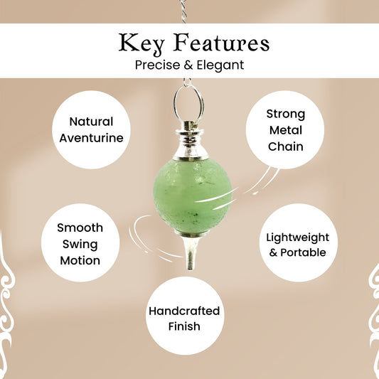 Green Aventurine Crystal Ball Chain Dowsing Pendulum for Reiki, Chakra, Healing, Meditation (4 Charts, Jute Bag)