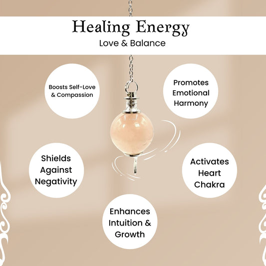 Rose Quartz Crystal Ball Chain Dowsing Pendulum for Reiki, Chakra, Healing, Meditation