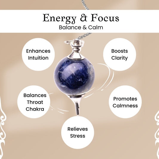 Sodalite Stone Crystal Ball Chain Dowsing Pendulum for Reiki, Chakra, Healing, Meditation (4 Charts, Jute Bag)